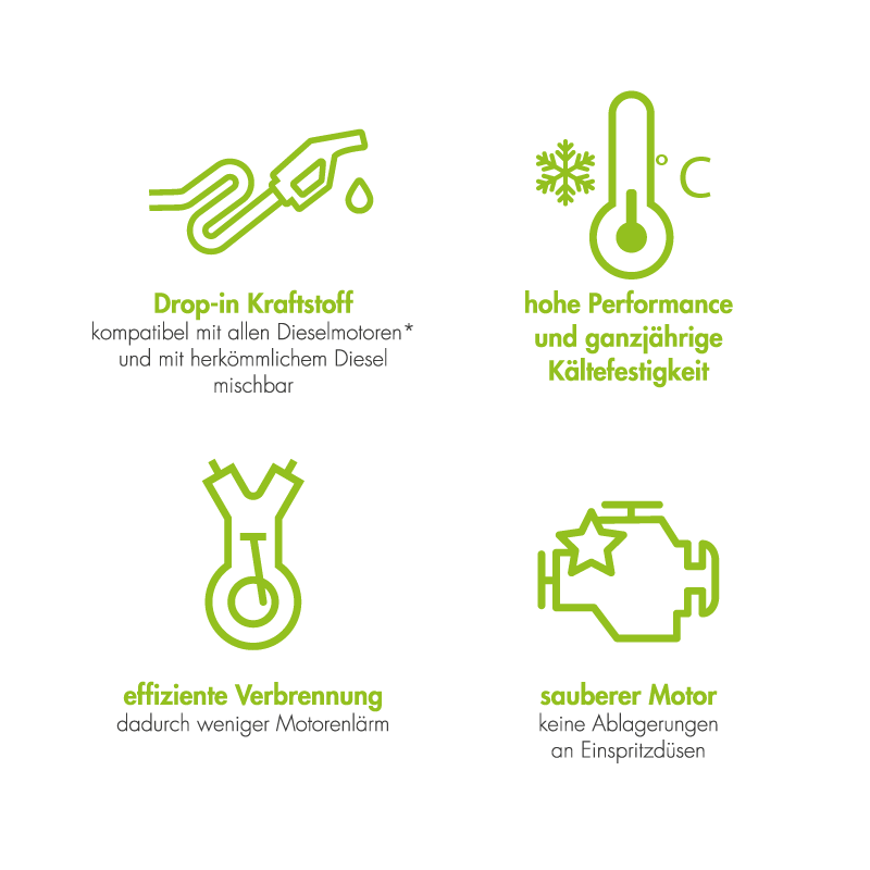 Diesel aus 100% erneuerbaren Rohstoffen - eine sofort verfügbare Lösung zur Reduktion der CO2-Emissionen.